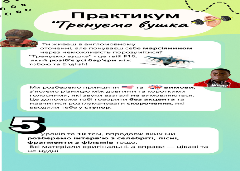 - Розуміння англійської мови на слух