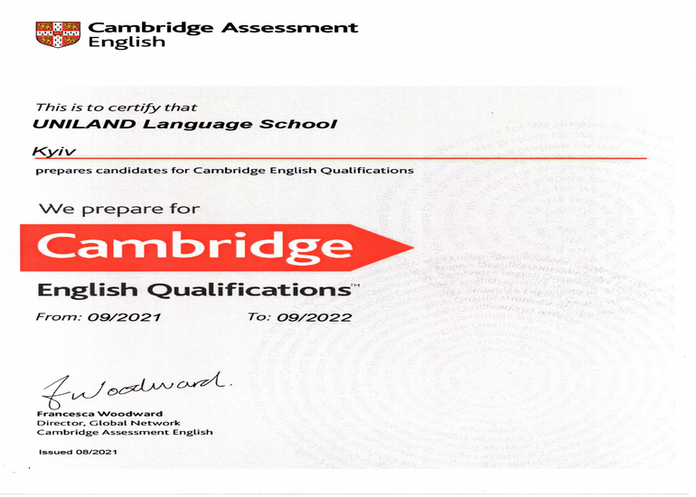 Мы являемся официальным центром подготовки к Кембриджским экзаменам. Ежегодно наши учащиеся подтверждают высокий уровень обучения в школе успешной сдачей международных тестов.